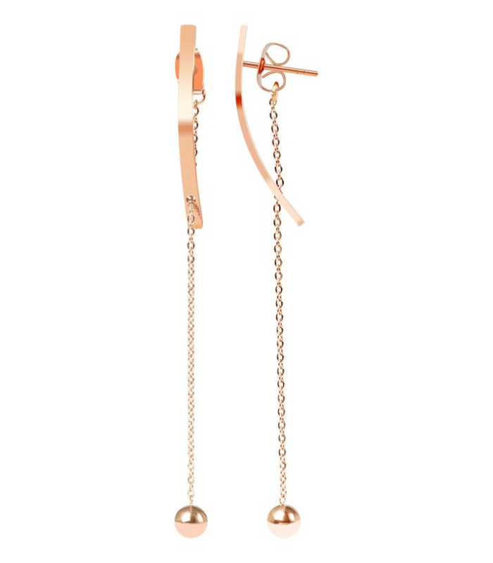 Akzent Edelstahl Ohrring mit Stein und Kette, Lang, roségoldfarbig, Länge: 12 cm / Breite: 0,2 cm / Stärke: 0,2 cm