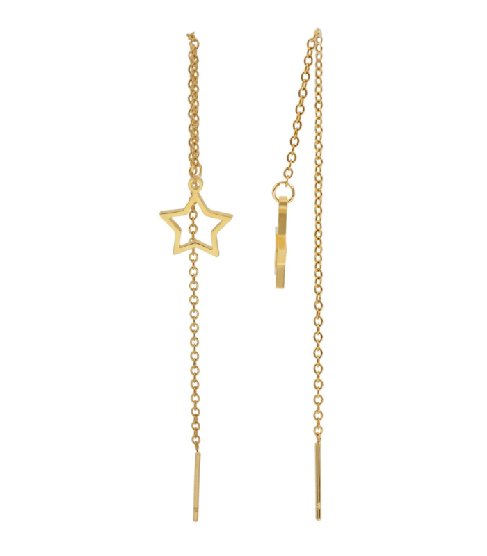 Diese Ohrhänger überzeugen durch ihre klare Linienführung und ihre Leichtigkeit. Edelstahl ist nicht nur optisch modern, sondern auch pflegeleicht und widerstandsfähig im Alltag. Das Durchzieh-Design verzichtet auf einen klassischen Verschluss und sorgt so für eine besonders filigrane Optik. Der kleine Sternanhänger setzt einen verspielten Akzent, ohne den minimalistischen Charakter der Ohrringe zu verlieren. Dadurch lassen sich die Ohrhänger sowohl im Alltag als auch zu besonderen Anlässen tragen.