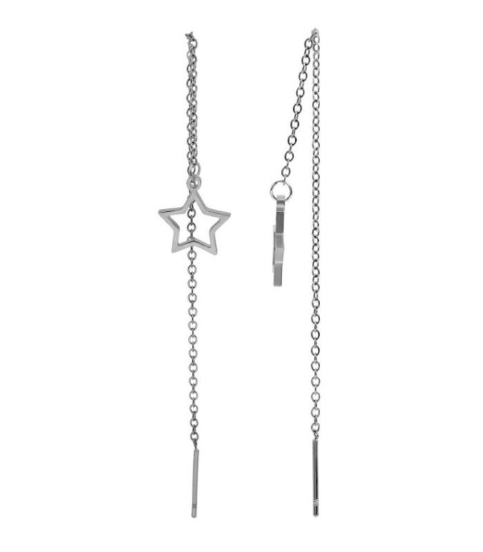 Akzent Edelstahl Ohrhänger zum Durchziehen, Sternanhänger, silberfarbig