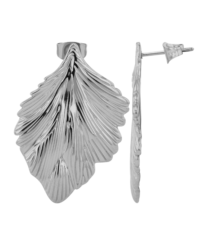 „Judi“ Edelstahlohrringe, Blatt, Statement, silberfarben