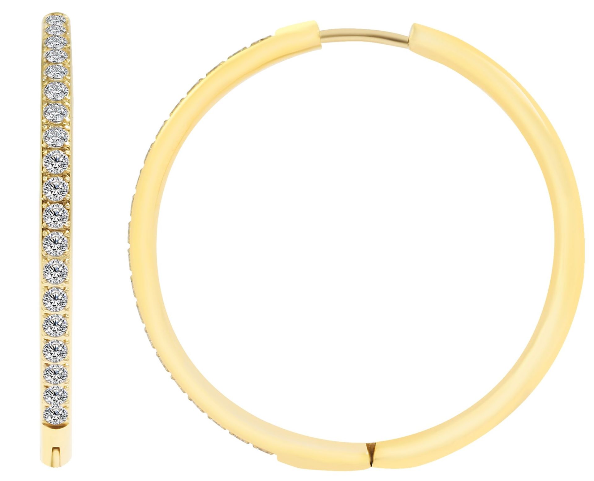 Diese mittelgroße Creole mit einem Innendurchmesser von 30 mm (Breite und Stärke 2,5 mm) ist groß genug für einen beeindruckenden Auftritt und trotzdem alltagstauglich. Der funkelnde Similibesatz auf der Vorderseite macht diese Edelstahl-Creolen zu einem echten Hingucker.