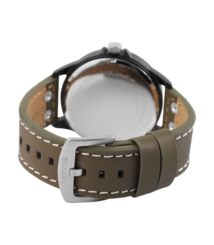 Die Raptor Luan Herren Uhr kombiniert ein klassisches Design mit funktionalen Eigenschaften, die sie zu einem zuverlässigen Begleiter für jeden Tag machen. Das Echtlederarmband sorgt für einen angenehmen Tragekomfort und verleiht der Uhr einen zeitlosen Look, der sich problemlos zu verschiedenen Outfits kombinieren lässt. Der große Gehäusedurchmesser von 46 mm verleiht der Uhr eine markante Präsenz, ohne dabei überladen zu wirken.