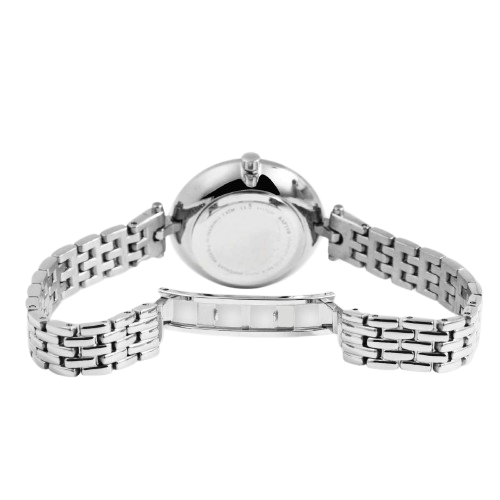 - Silberfarbenes Edelstahlgehäuse mit zusätzlichen Strass-Akzenten