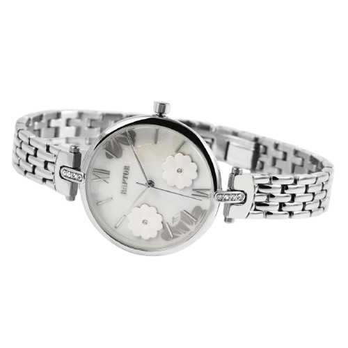 Die Raptor Malva Damenuhr ist ein stilvoller Begleiter für Frauen, die Wert auf ein besonderes Design und alltagstaugliche Eleganz legen. Bereits auf den ersten Blick überzeugt diese Uhr durch ihr liebevoll gestaltetes Zifferblatt mit Blumen in 3D-Optik. Jede einzelne Blüte ist mit einem dezenten Strass-Stein verziert, der dem Gesamtbild einen feinen Glanz verleiht, ohne aufdringlich zu wirken. Das silberfarbene Gehäuse umrahmt das Zifferblatt harmonisch und wird oben sowie unten zusätzlich von jeweils vier Strass-Steinen akzentuiert.