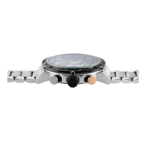 Auch das robuste Edelstahlarmband spielt eine wichtige Rolle für den Komfort. Mit einer Länge von 24 cm bietet es eine angenehme Passform, während die kürzbaren Elemente eine individuelle Anpassung ermöglichen. Das Gehäuse mit 48 mm Durchmesser und 13 mm Höhe verleiht der Uhr eine markante Präsenz, ohne zu überladen zu wirken. Mineralglas schützt das Zifferblatt und sorgt dafür, dass die Uhr auch im täglichen Gebrauch beständig bleibt. Mit einer Wasserdichtigkeit von 3 Bar ist sie für alltägliche Situationen bestens ausgestattet.