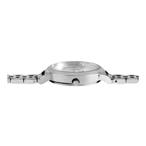 Die Raptor Sara Damenuhr vereint zeitlose Eleganz mit authentischem Design. Bereits beim ersten Blick fällt das schlichte, aufgeräumte Zifferblatt ins Auge, das die klassische Formensprache dieses Modells unterstreicht. Der fließende Übergang vom Gehäuse zum Edelstahlarmband sorgt für eine harmonische Optik, die modern und traditionell zugleich wirkt. Auf dem Zifferblattring setzen funkelnde Similisteine einen dezenten, aber wirkungsvollen Akzent – ein Detail, das dem Modell einen Hauch von Eleganz verleiht, ohne aufdringlich zu sein.