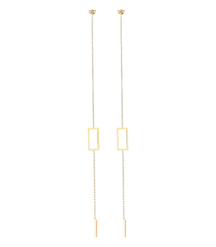 Boucle d’oreille Akzent en acier inoxydable avec pierre Swarovski, rectangle ouvert, couleur or, longueur : 7 cm / largeur : 1,3 cm / épaisseur : 0,4 cm