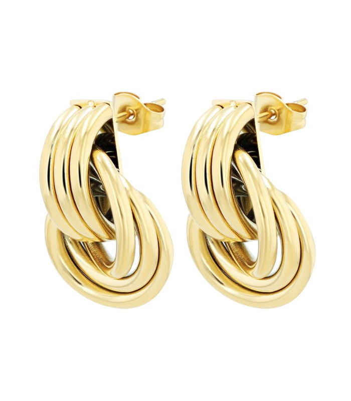Clous d’oreilles en acier inoxydable « Luisa », de couleur dorée, en forme d’anneaux entrelacés