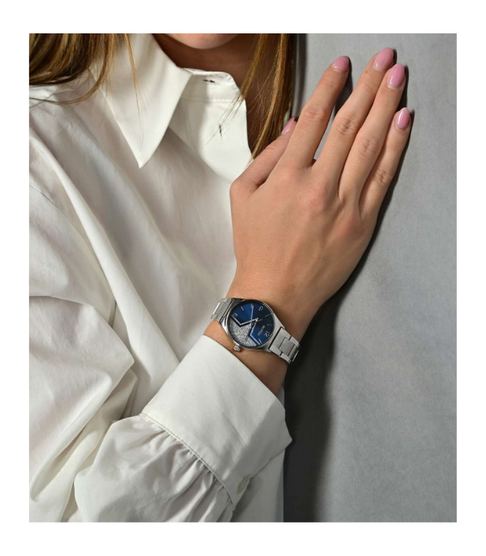 Le bracelet en acier inoxydable assure un port confortable et stable tout au long de la journée. Le fermoir déployant facilite la mise en place de la montre et offre une bonne sécurité au poignet. Elle devient ainsi un compagnon fiable pour un usage quotidien.