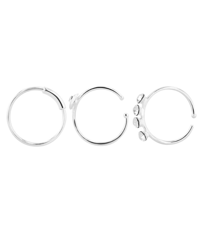 Anneau de nez / piercing nasal « Vola », ouvert, argent véritable 925/-, rhodié, 3 variantes de 6 pièces chacune, UE-18